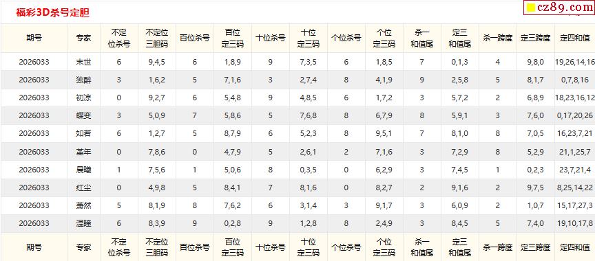 26年033期彩宝贝专家福彩3D杀号定码图表