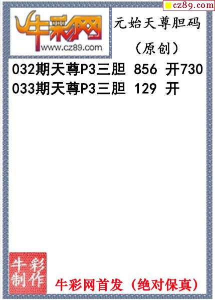 元始天尊胆码图033期体彩P3图谜(原创)