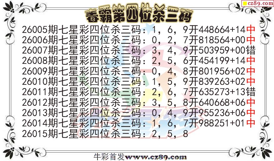 七星彩2026015期毒霸第四位杀三码图迷 10中8