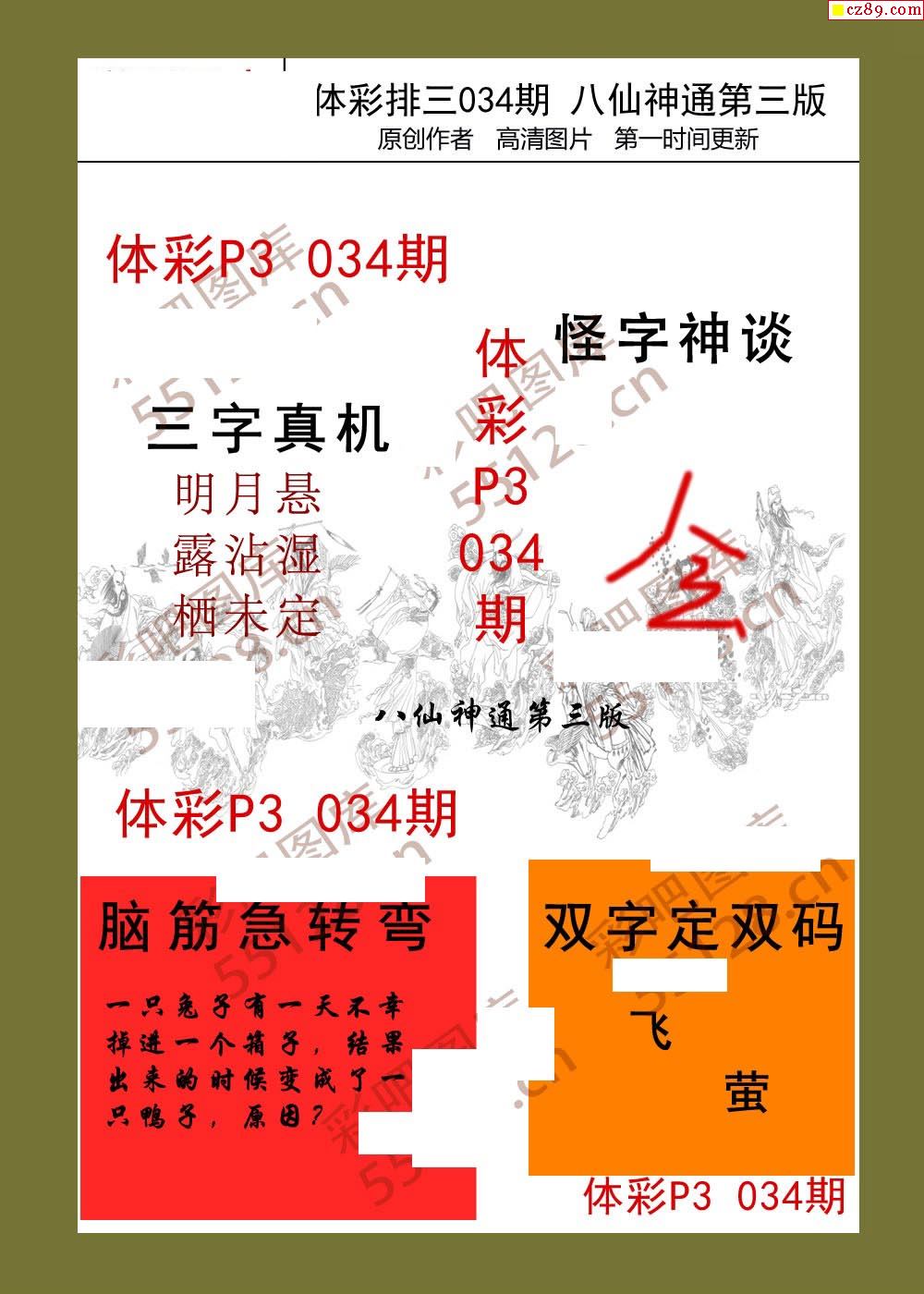 八仙神通系列034期体彩p3图迷