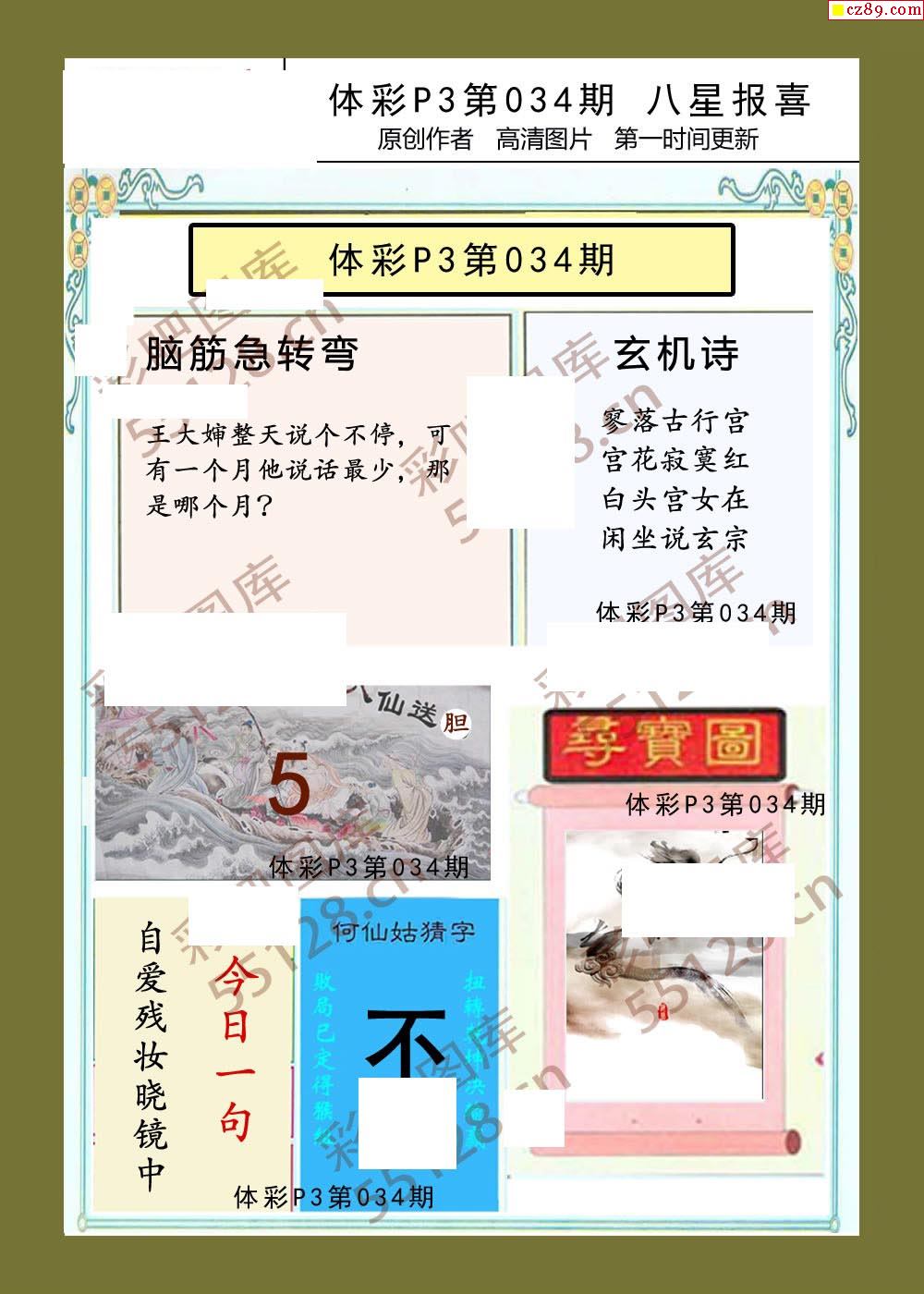 八星报喜034期体彩p3图谜