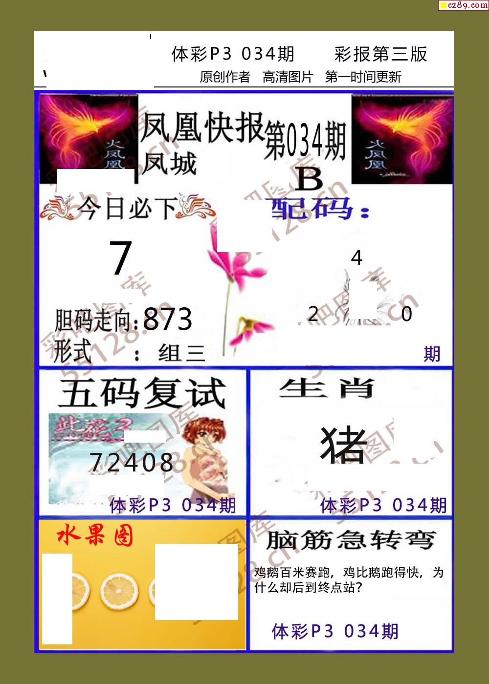2026年034期牛彩网体彩P3画迷图谜汇总分享
