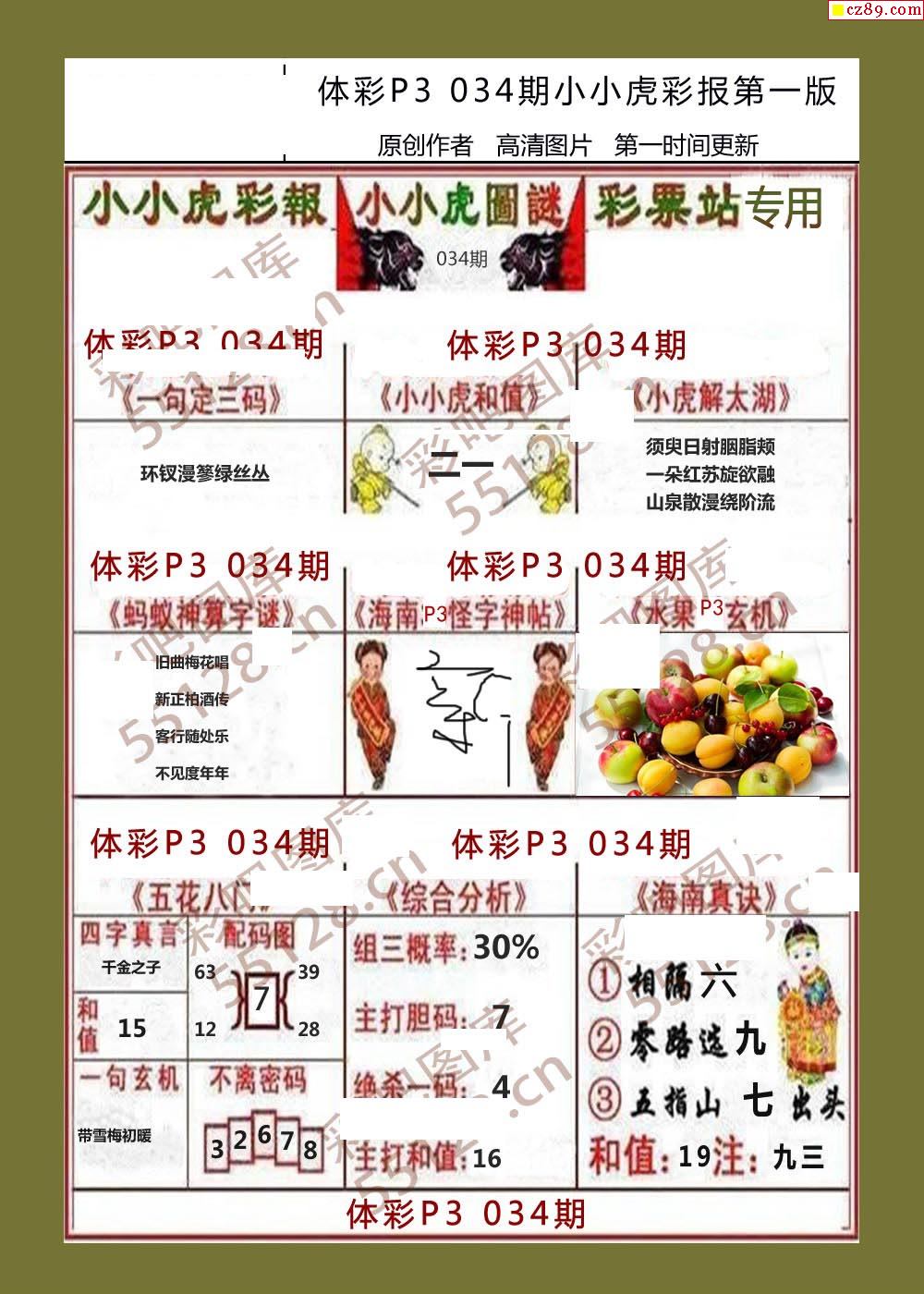 小小虎彩报034期体彩p3图谜