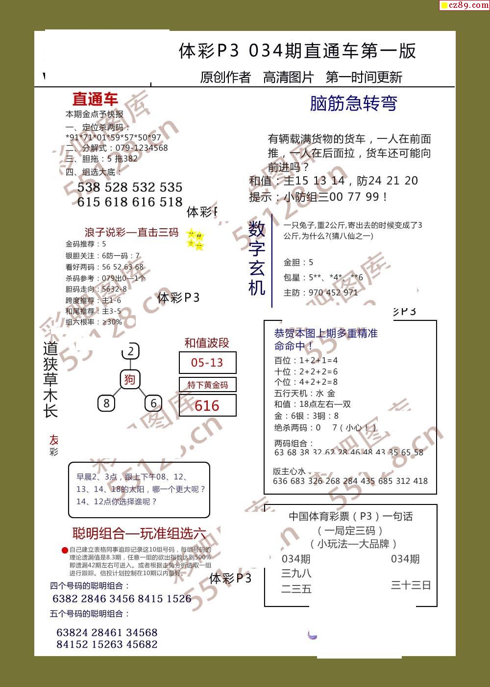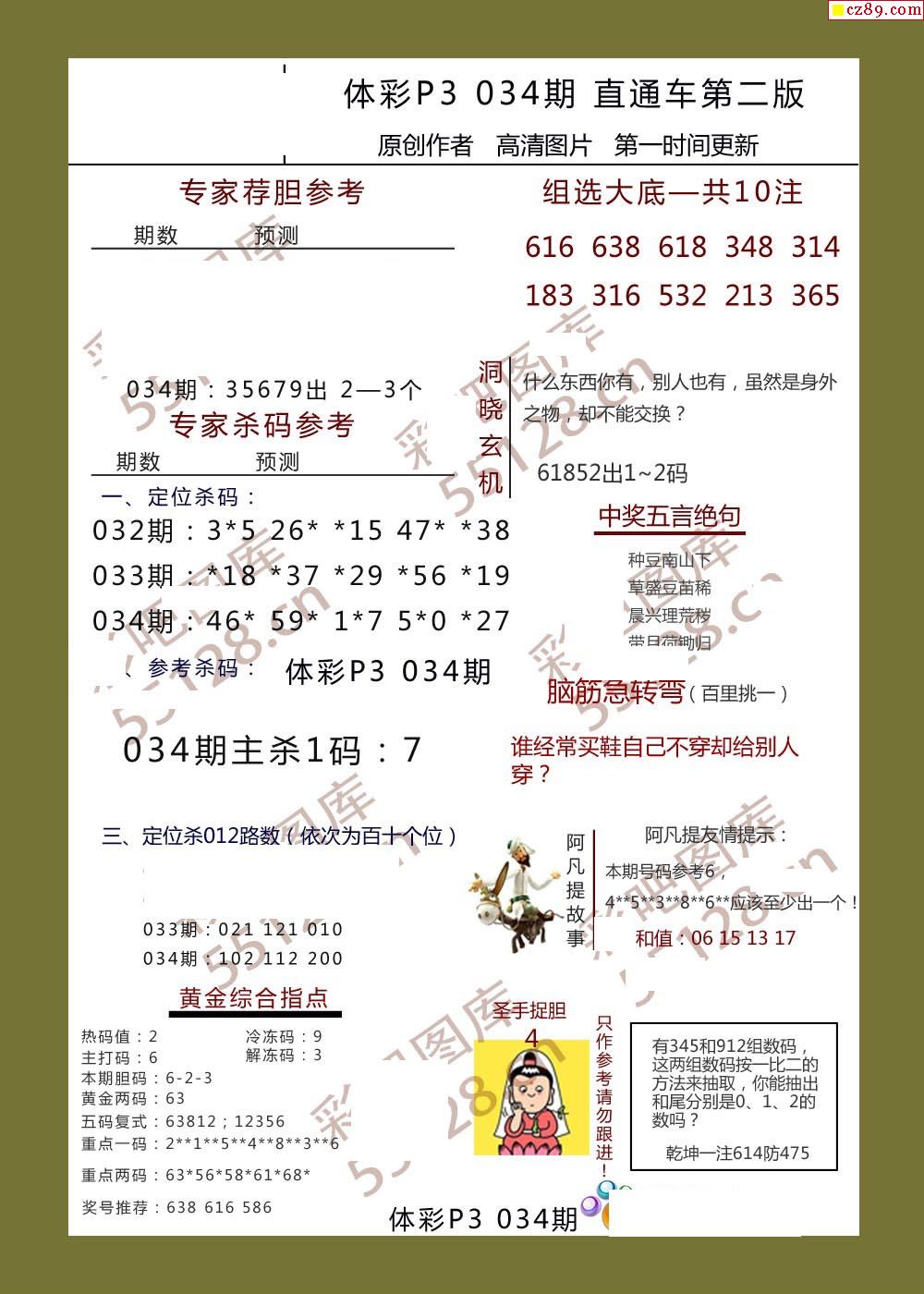 2026年034期牛彩网体彩P3画迷图谜汇总分享