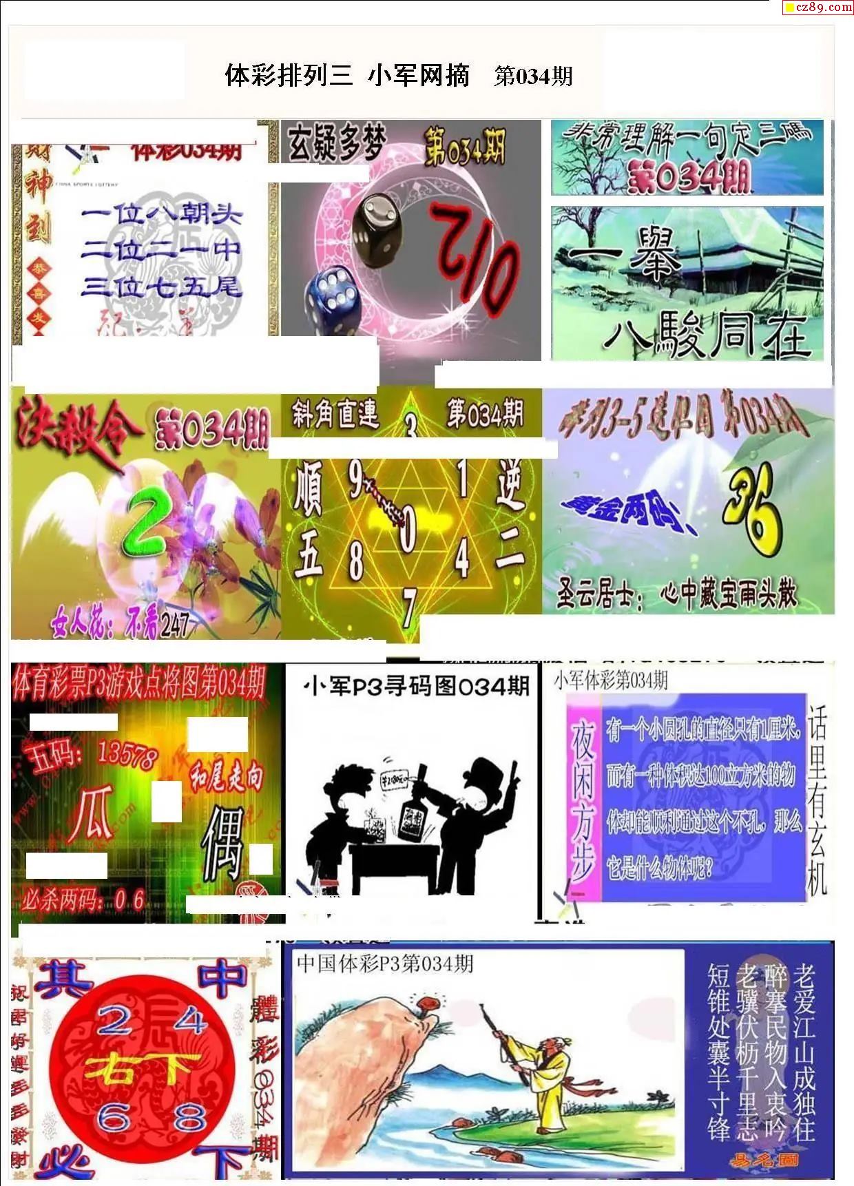 小军网摘26年034期体彩P3彩报图谜