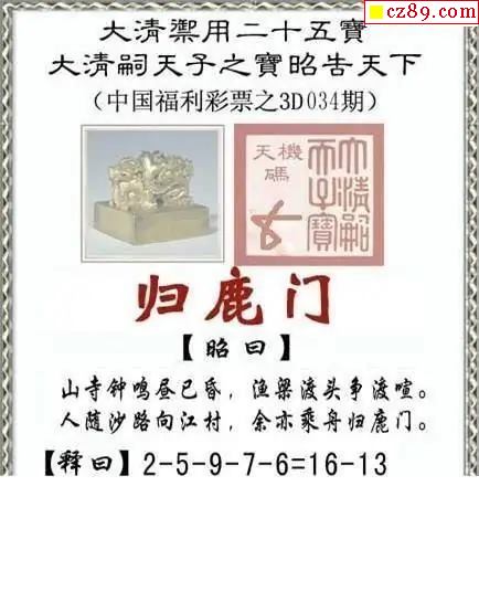 福彩3D2026034期福彩金刚一句定三码字图谜