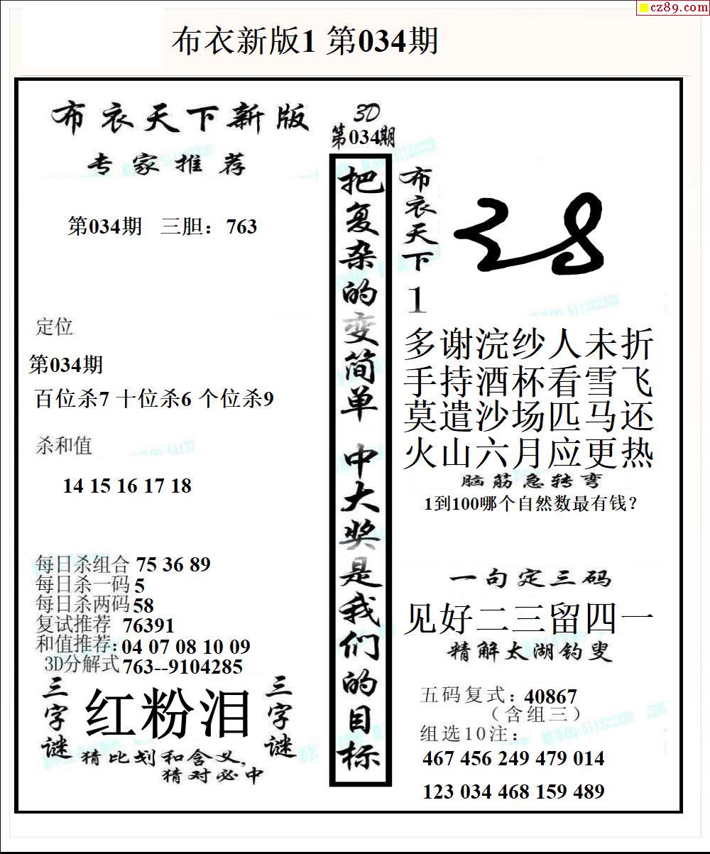 2026034期3d图谜汇总(五)