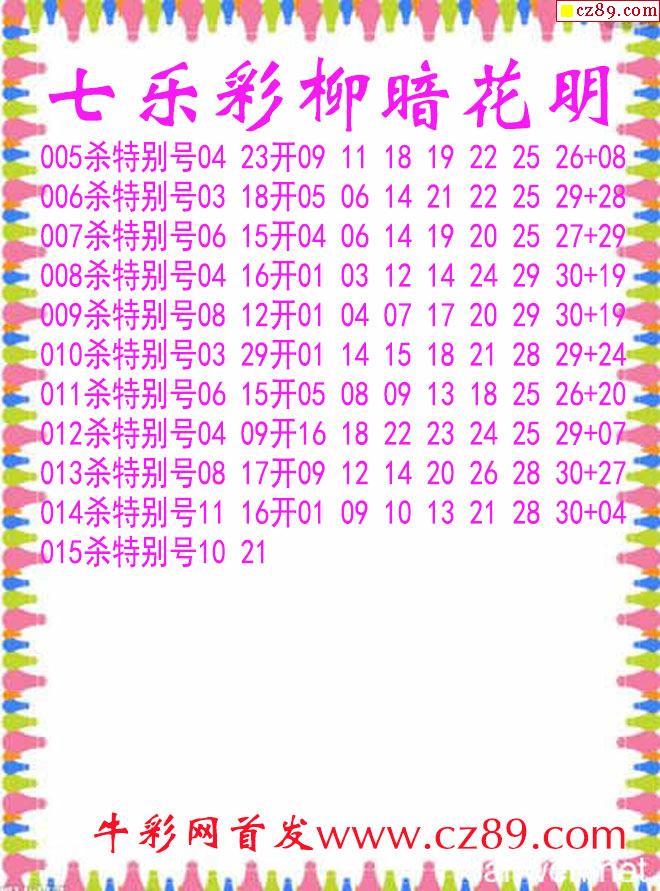 七乐彩2026015期柳暗花明杀码图谜