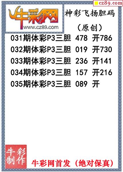 神彩飞扬三胆035期体彩P3图谜(原创)