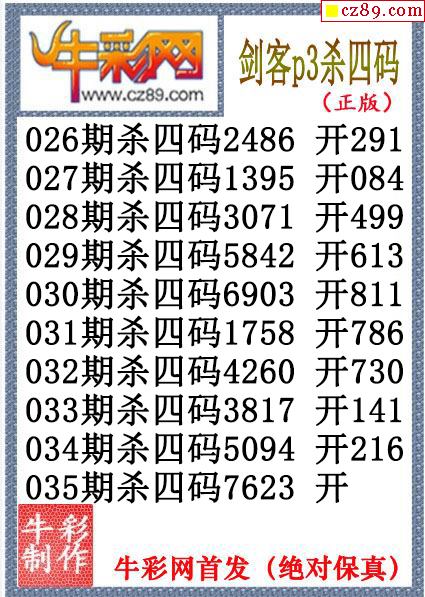26年035期公孙宇P3杀码图
