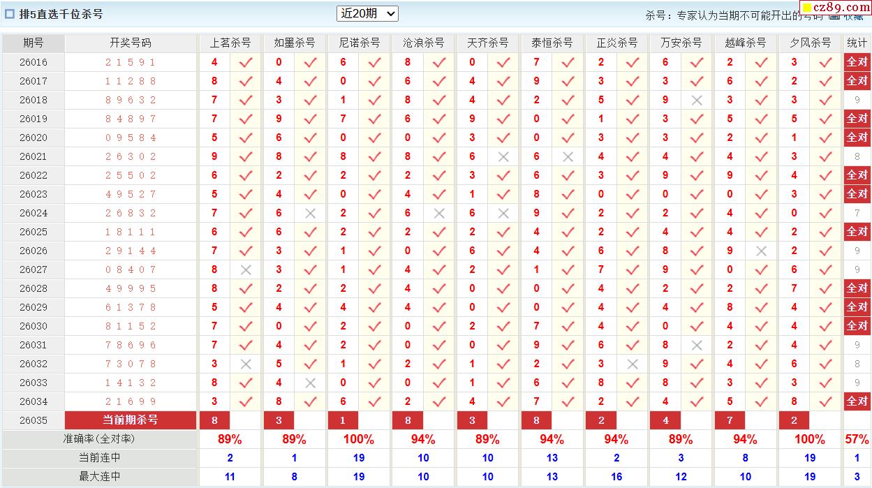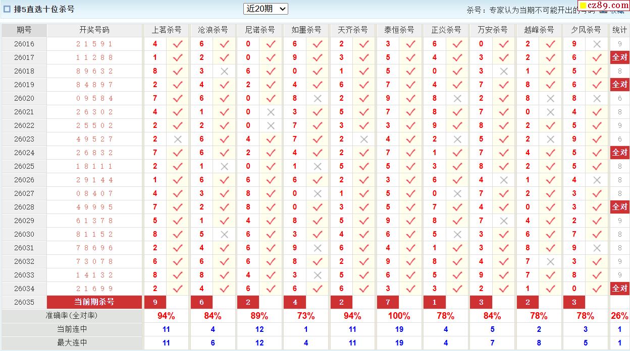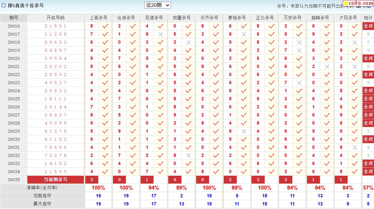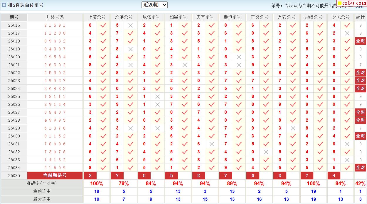 26年035期彩宝贝专家体彩P3杀号定码图表