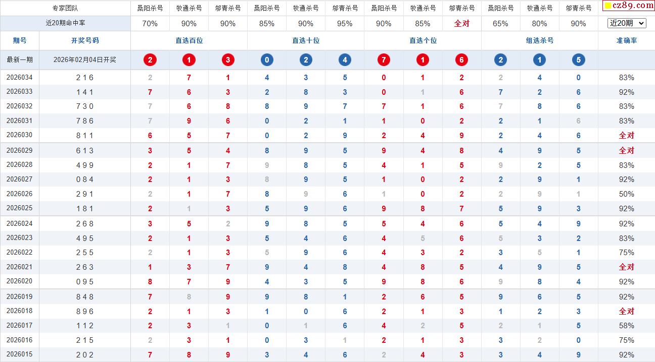 26年035期彩宝贝专家体彩P3杀号定码图表
