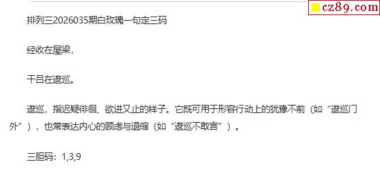 白玫瑰排三一句定三码26年035期