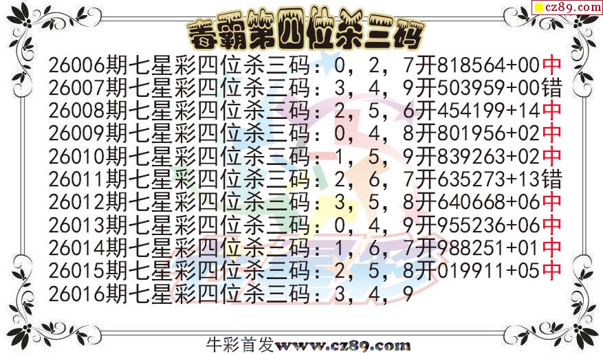 七星彩2026016期毒霸第四位杀三码图迷 10中8