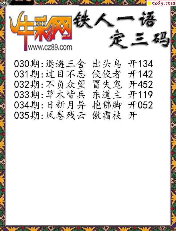 牛彩版3D字谜彩报图26年035期打印版