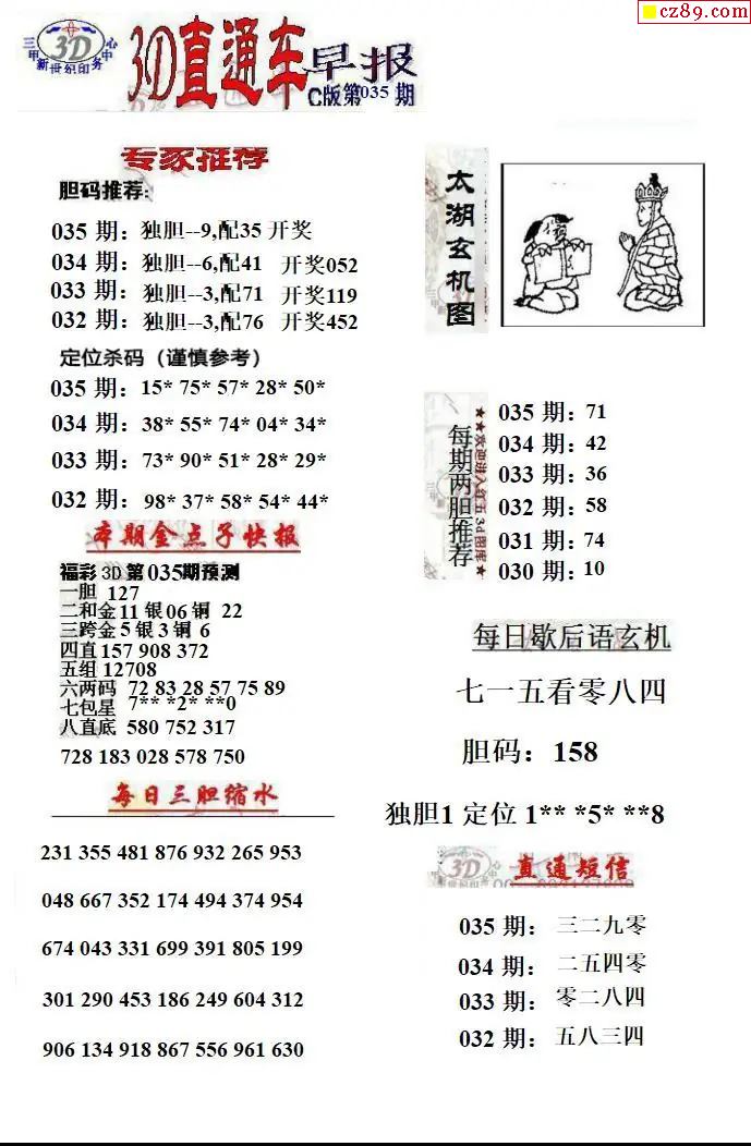 2026035期解太湖3d字图迷汇总报