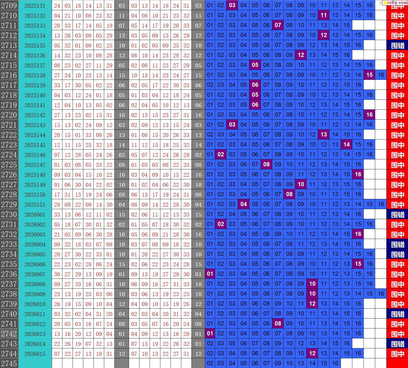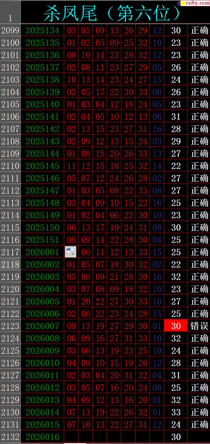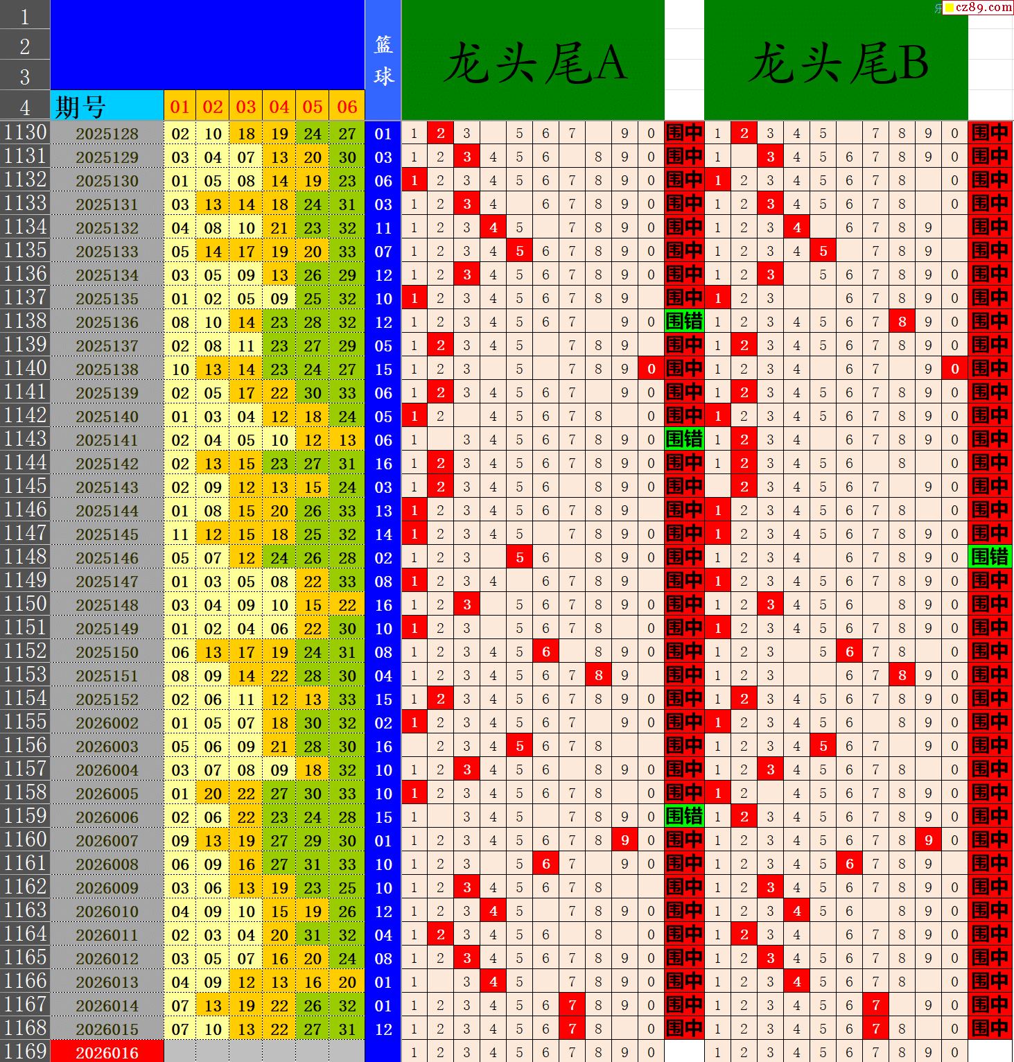 26年016期秋雨龙头凤尾走势图表