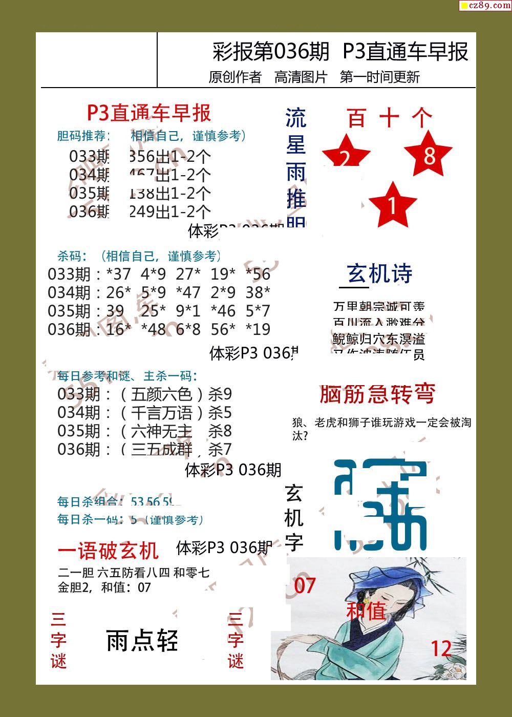 2026年036期牛彩网体彩P3画迷图谜汇总分享