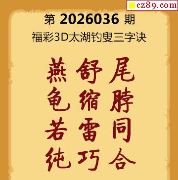 26年036期3d字谜太湖钓叟三字诀《保真》