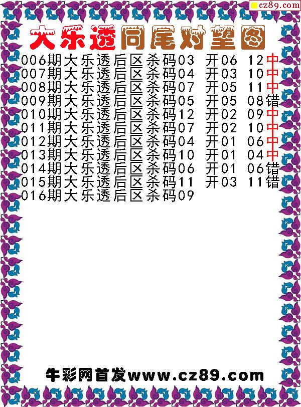 大乐透2026016期同尾对望后区杀号图谜 10中7