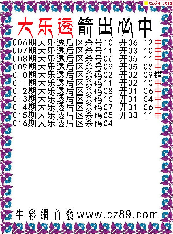 大乐透016期牛彩特邀专家前区后区杀号定胆图表