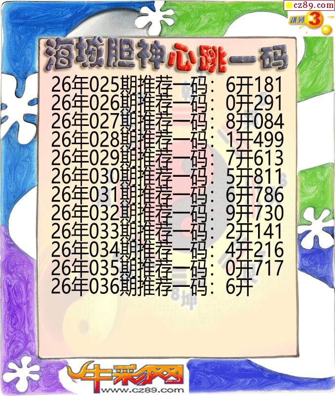 海城胆神心跳一码036期体彩P3图谜