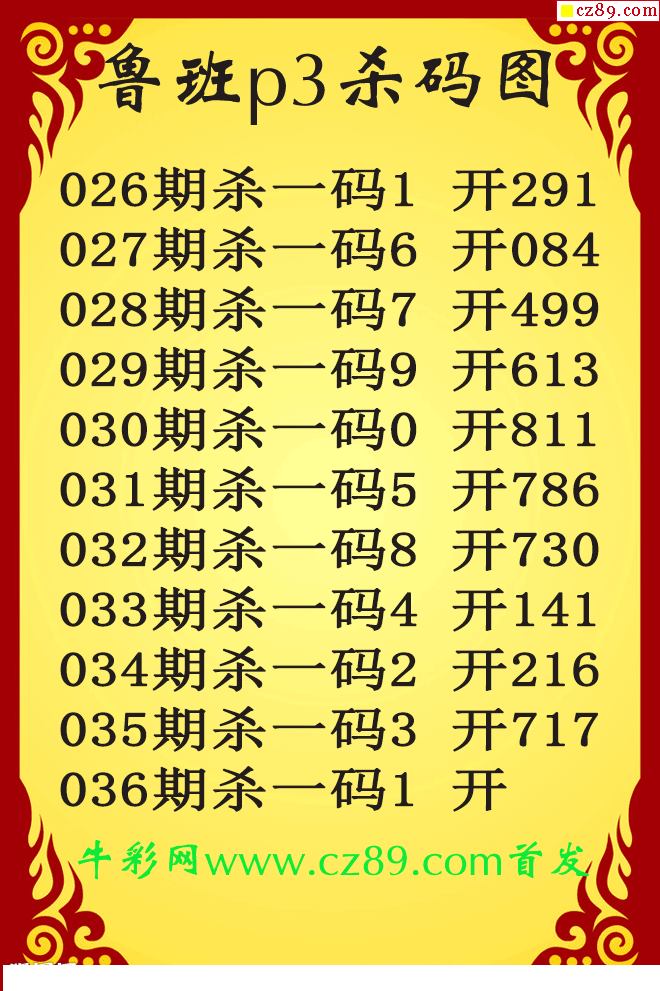 26年036期公孙宇P3杀码图