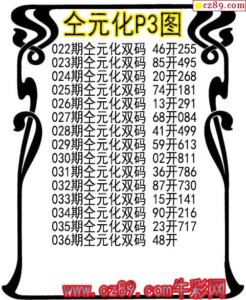 2026年036期牛彩网体彩P3画迷图谜汇总分享