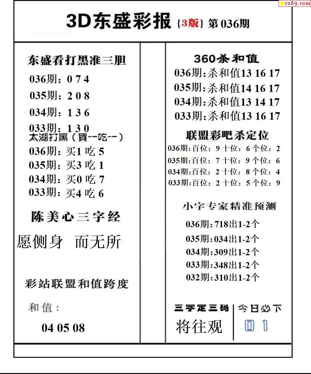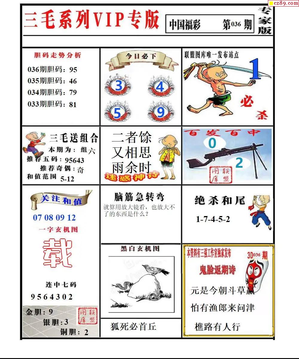福彩3D2026036期东盛彩报+精品三毛会员版