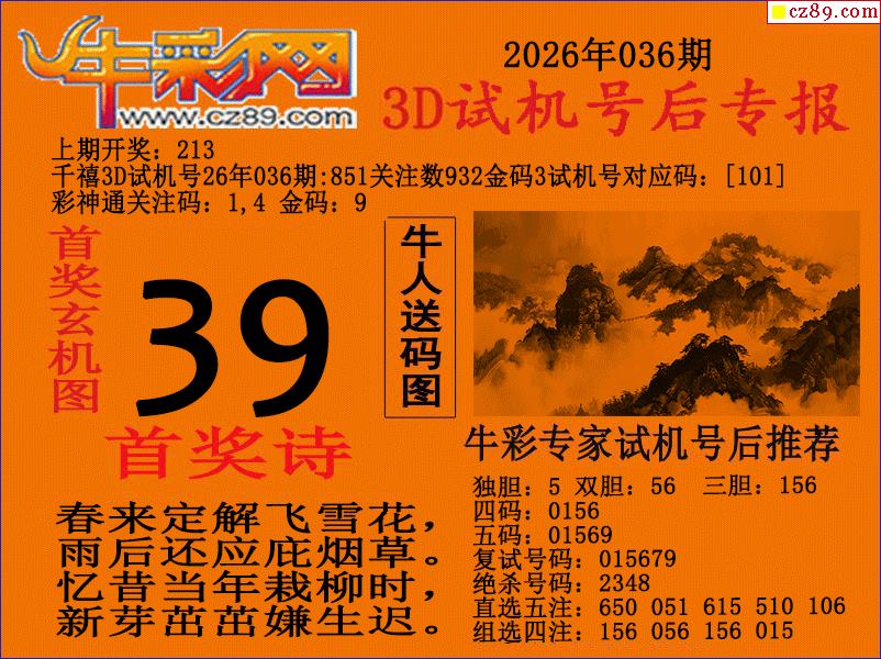 牛彩版3D预测彩报图26年036期打印版