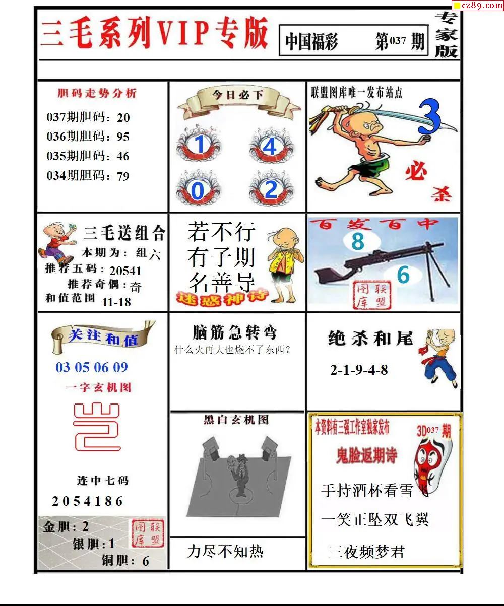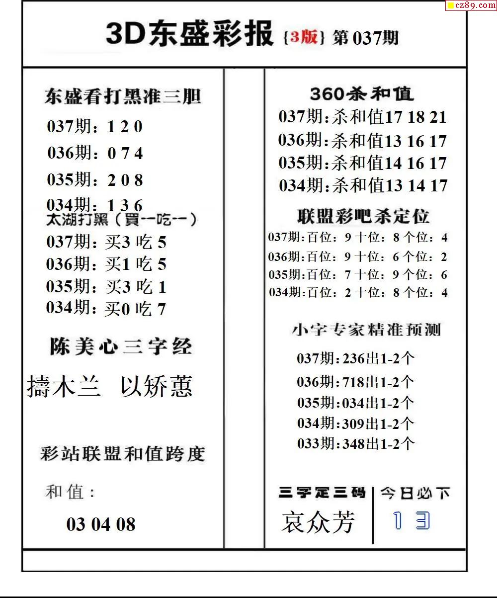 福彩3D2026037期东盛彩报+精品三毛会员版