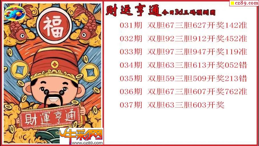 26年037期3d 财运亨通今日三码预测图