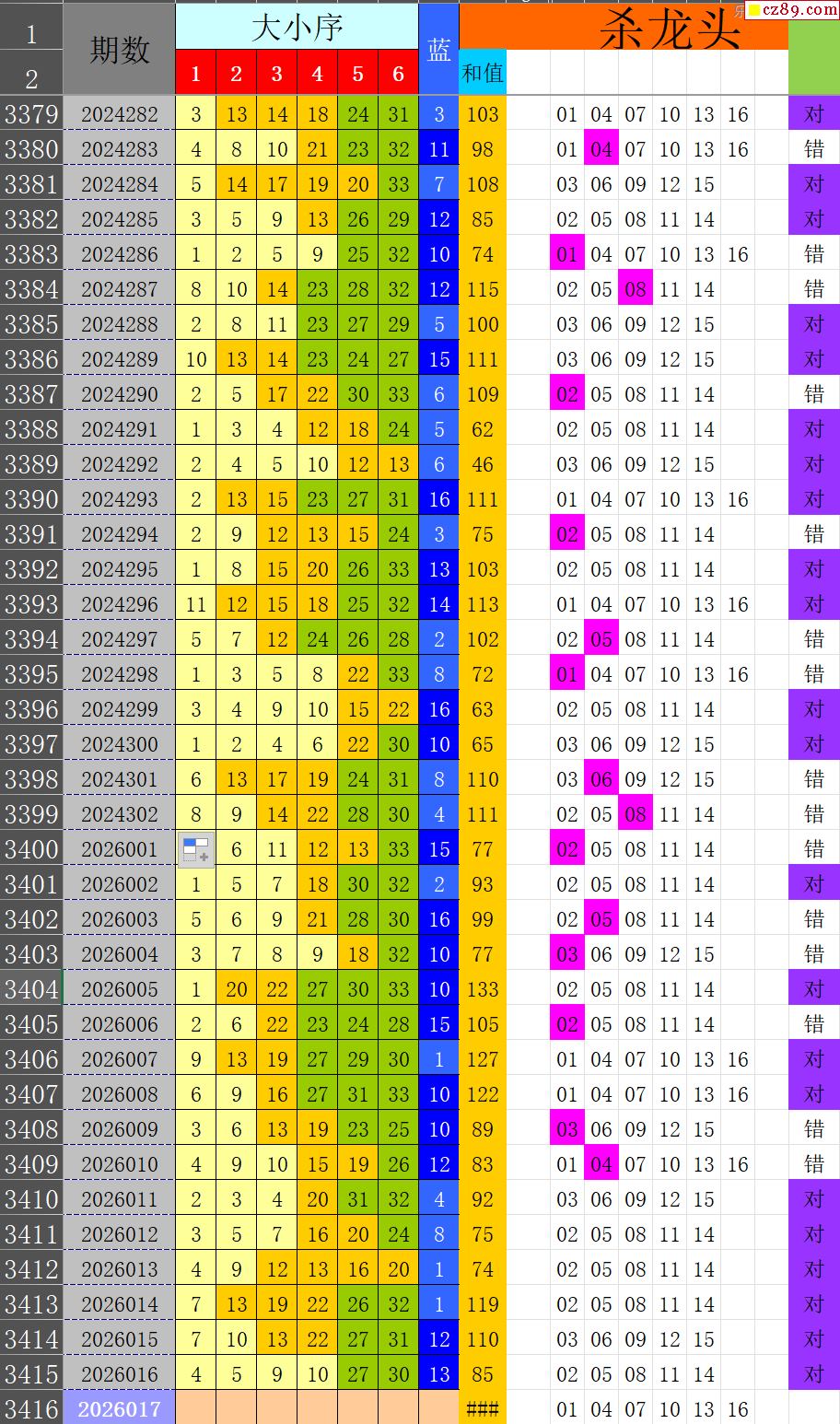 双色球2026017期阳光杀蓝汇总图表