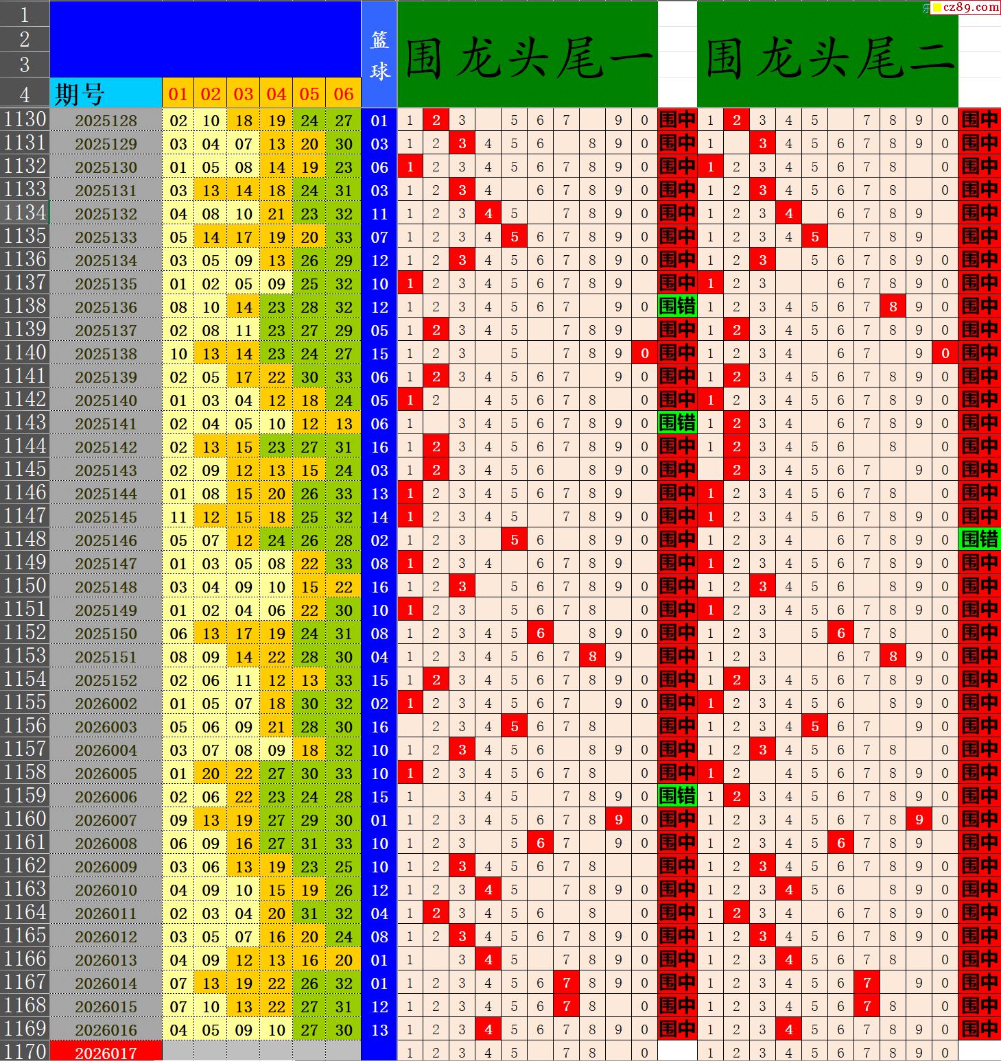 26年017期秋雨龙头凤尾走势图表