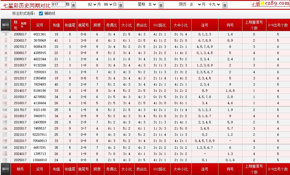 017期七星彩历史同期对比图