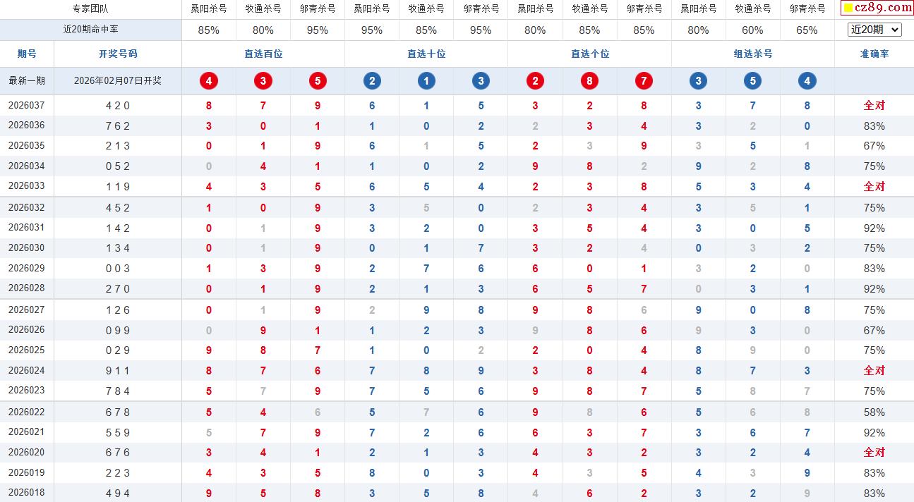 26年038期彩宝贝专家福彩3D杀号定码图表