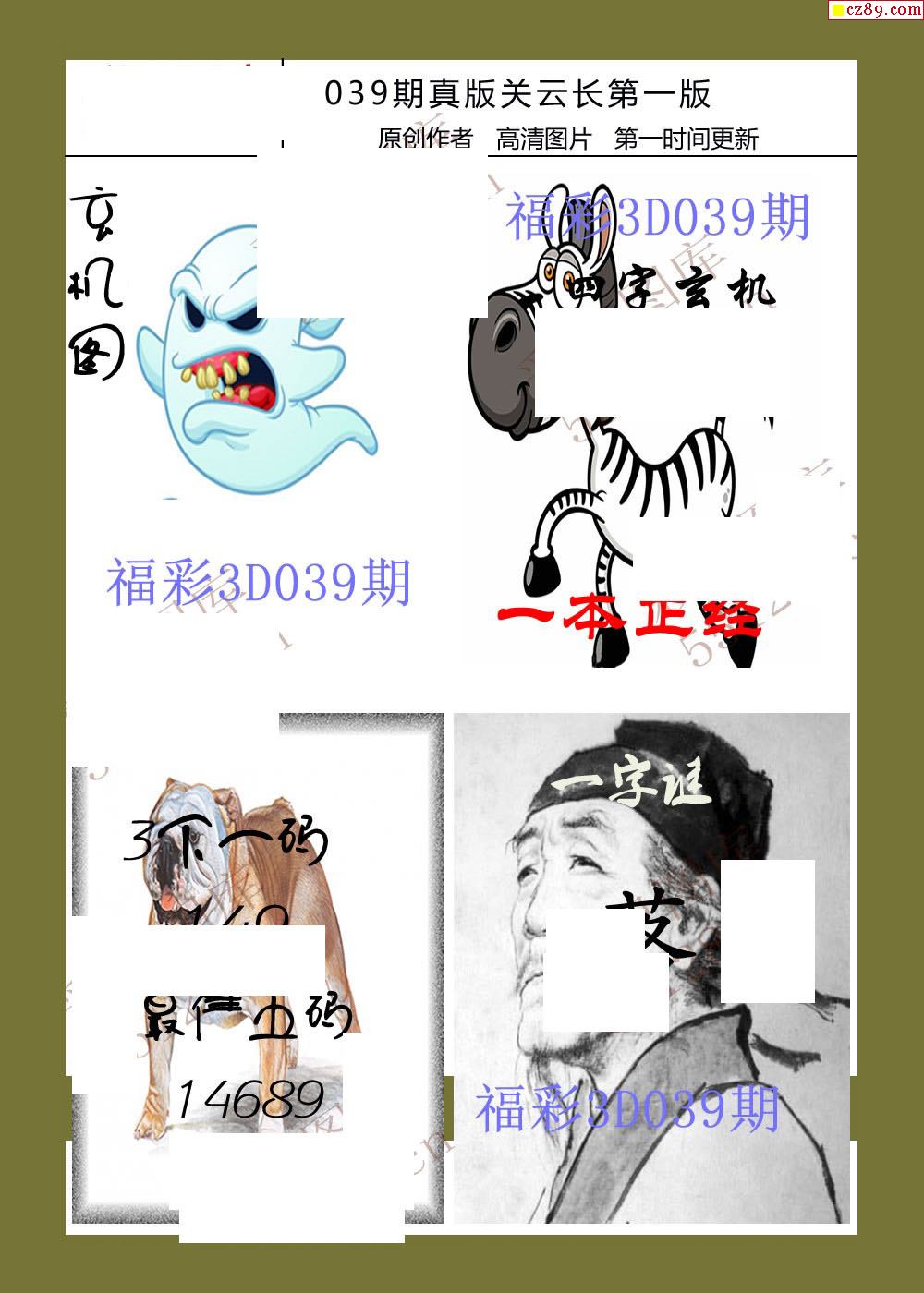26年039期福彩3d真版关云长图谜