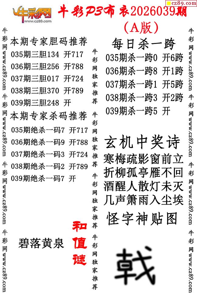 牛彩P3布衣26年039期AB版图谜(精华版)