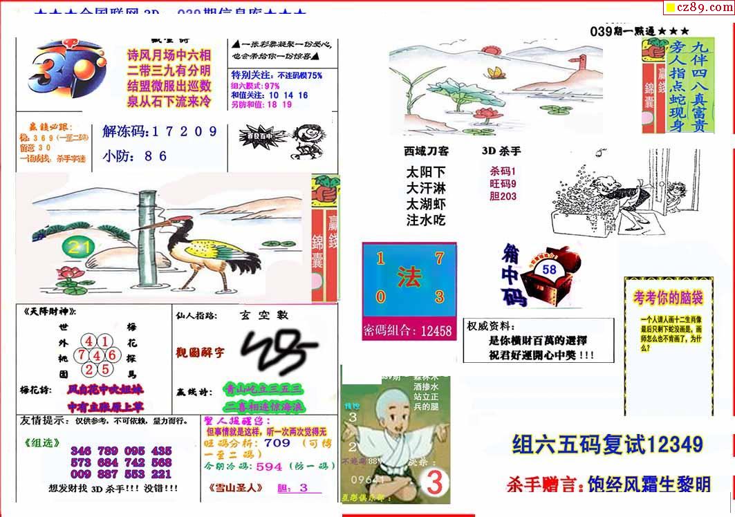 杀手+鑫马快报+字迷汇总26年039期3d图谜