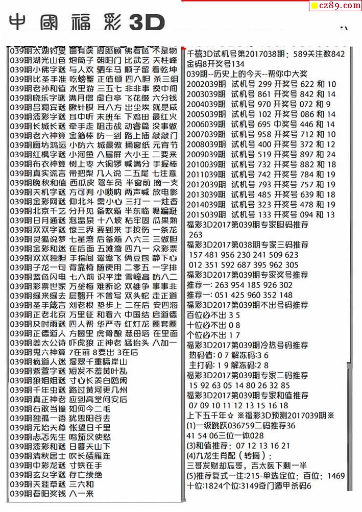 2026039期福彩3D图谜汇总