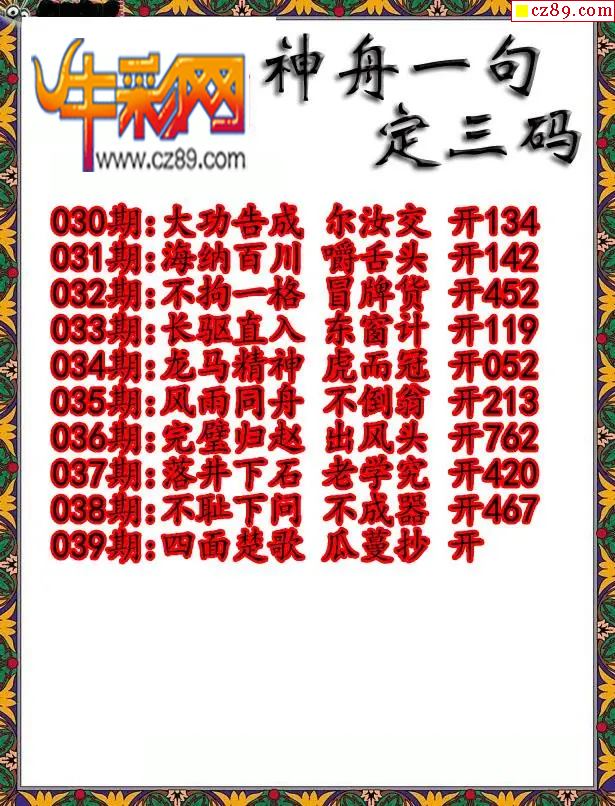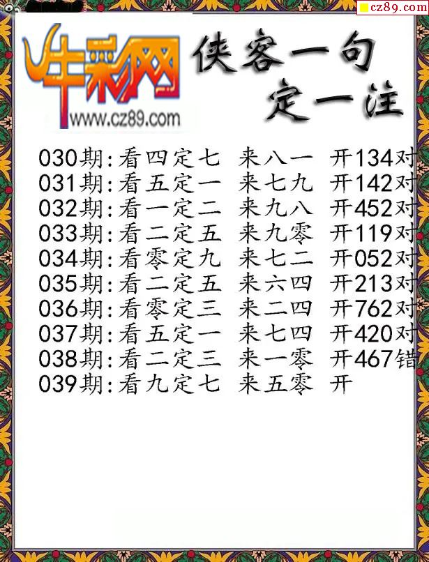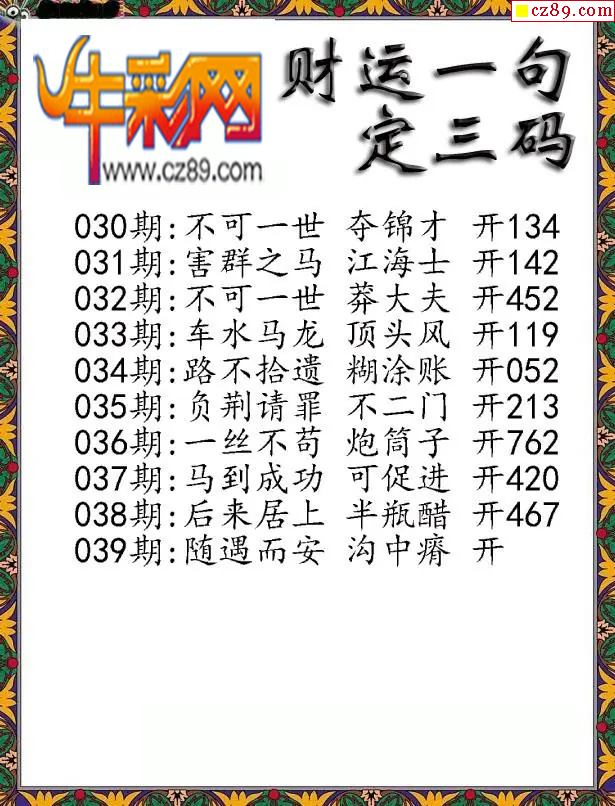 牛彩版3D字谜彩报图26年039期打印版