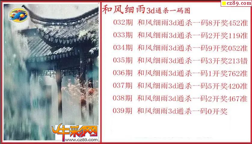 26年039期3d 和风细雨通杀一码图