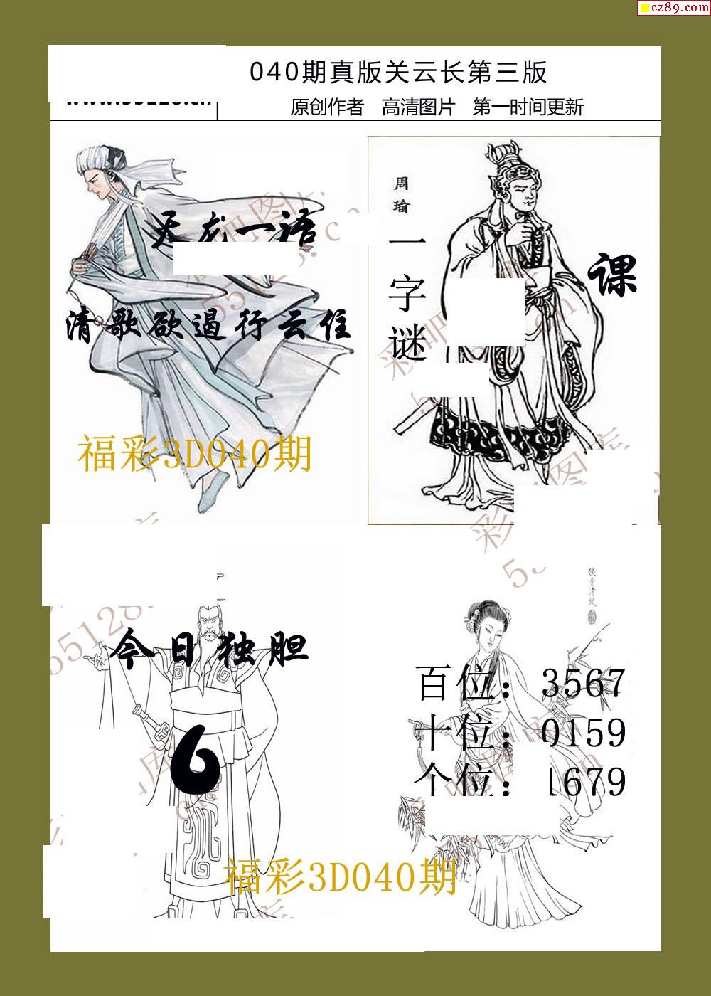 26年040期福彩3d真版关云长图谜