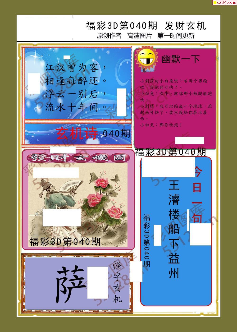 发财玄机26年040期福彩3d画谜