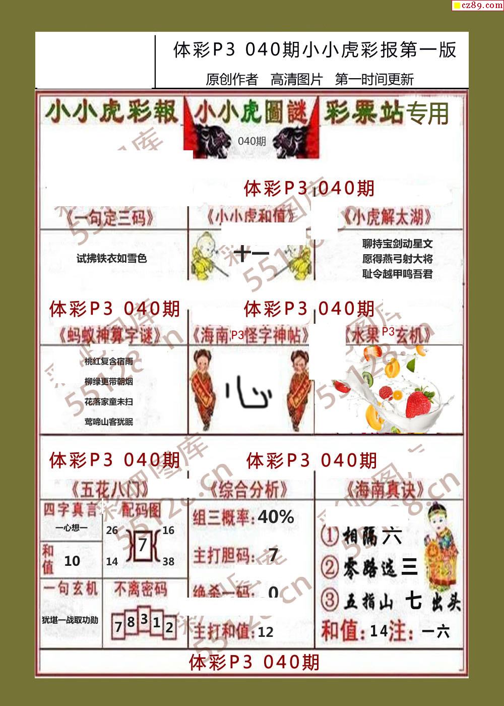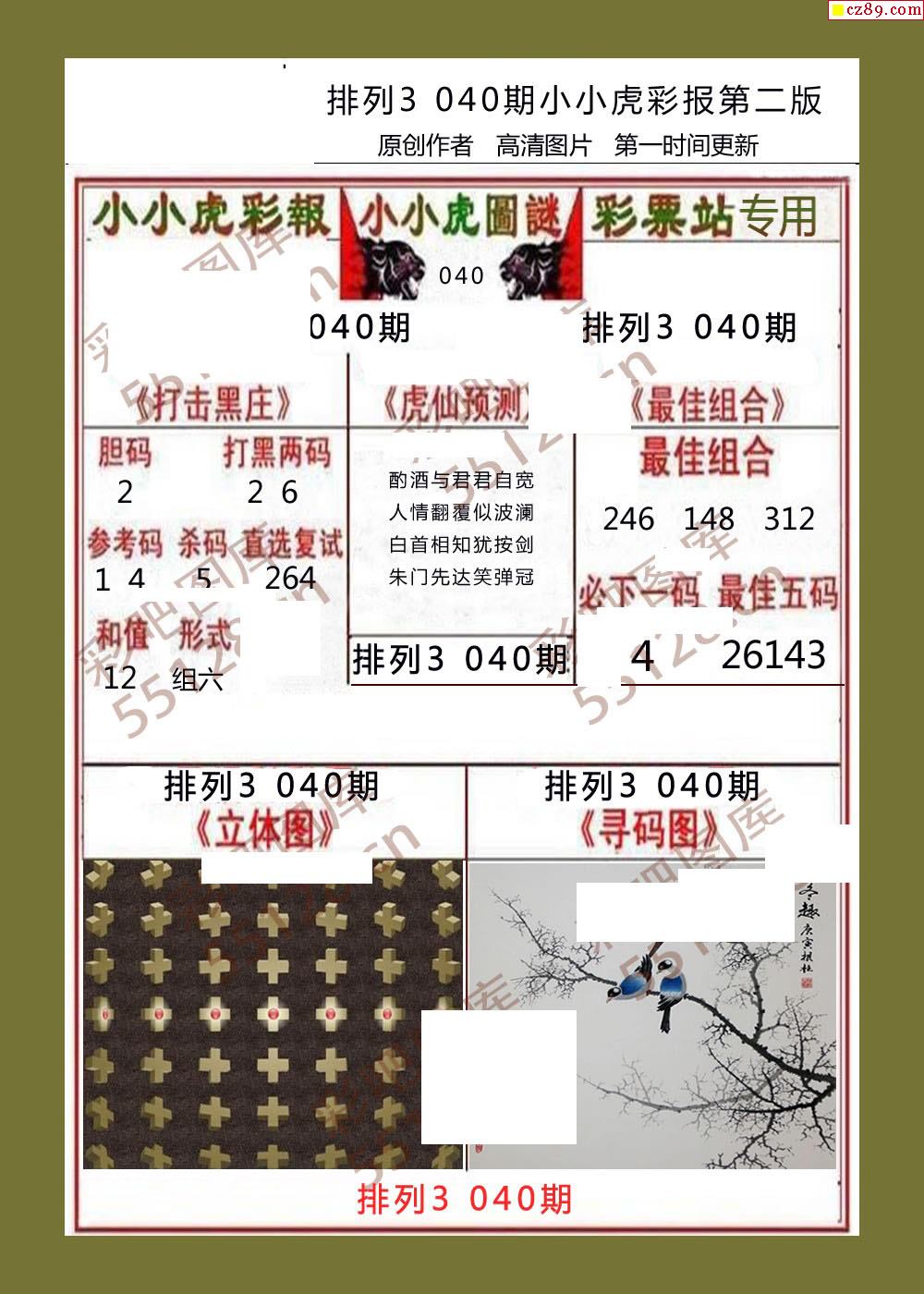 2026年040期牛彩网体彩P3画迷图谜汇总分享