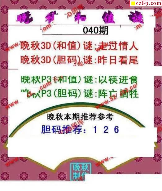 晚秋和值谜2026040期3d图谜