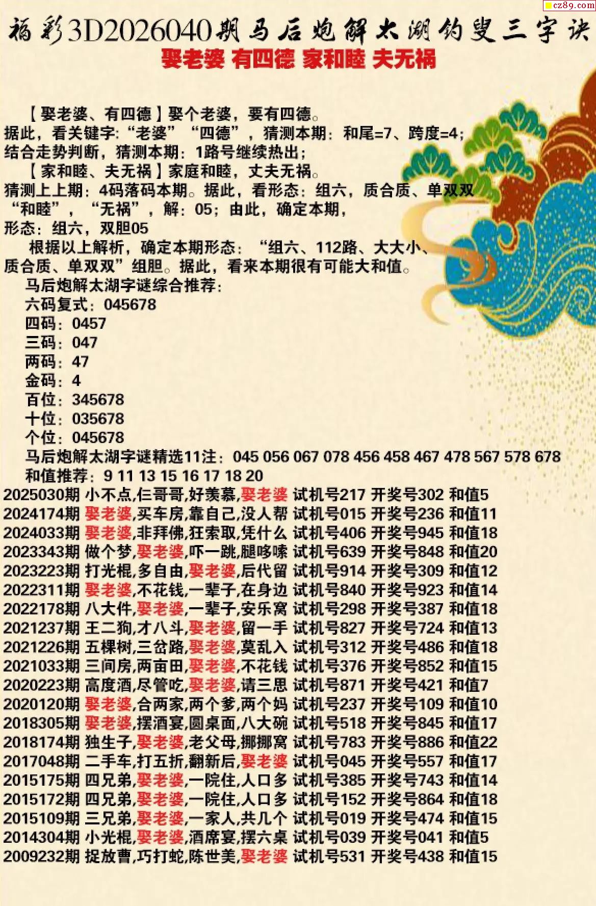 解谜大师26年040期太湖解释之 娶老婆