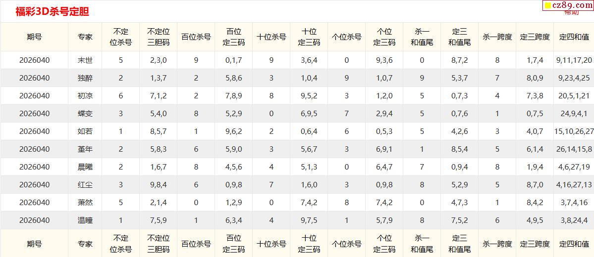 26年040期彩宝贝专家福彩3D杀号定码图表