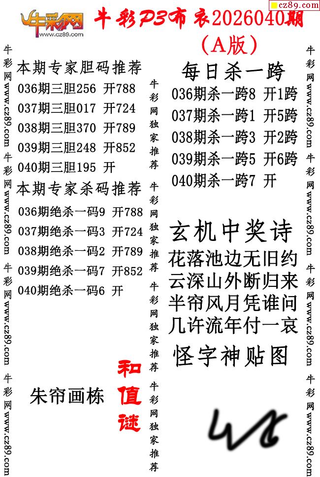 牛彩P3布衣26年040期AB版图谜(精华版)