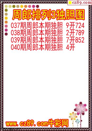 2026年040期牛彩网体彩P3画迷图谜汇总分享